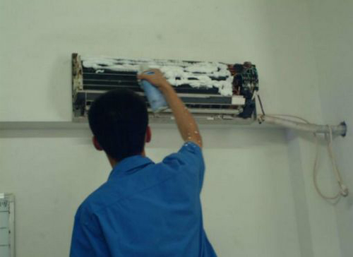 | 秦皇岛市空调维修师傅给秦皇岛市用户上门维修清洗空调。 |